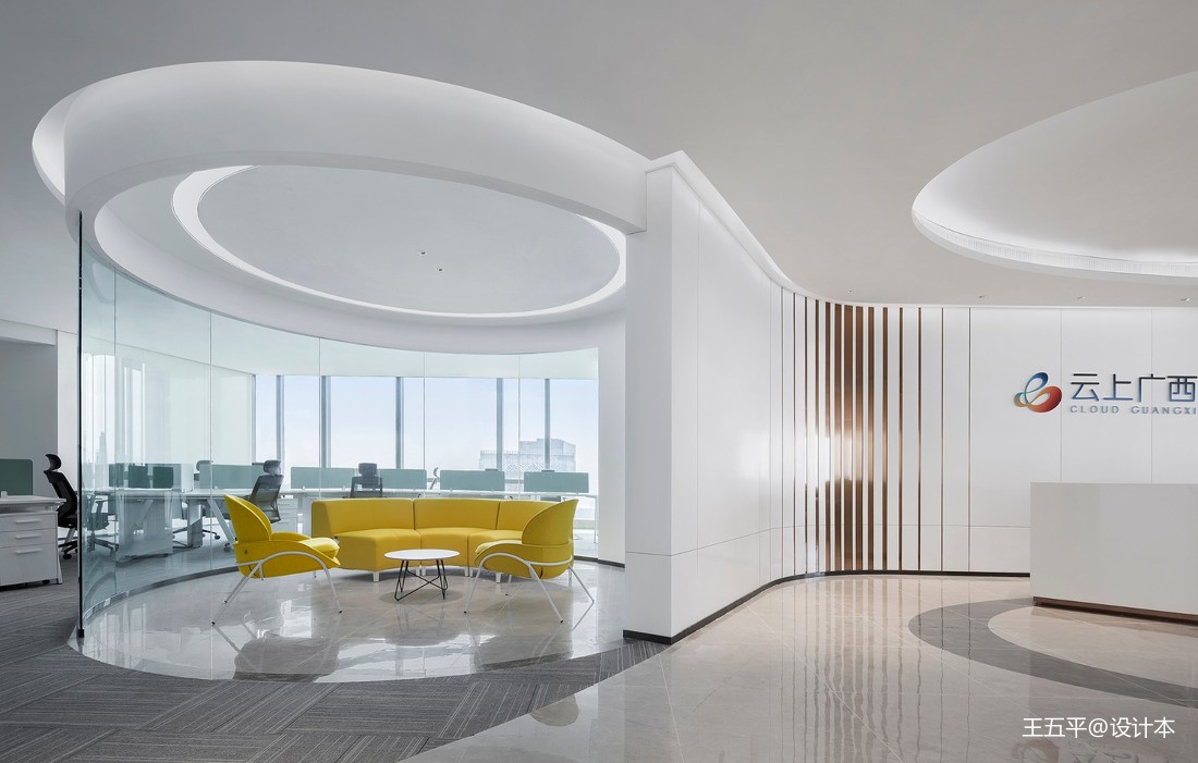 本項目盤踞于南寧市五象新區,恢弘大氣。室內辦公大堂則延續了建筑風格,糅合了科技與藝術的理念,以創新的手法抒寫現代化辦公國際風貌。中空大堂的室內有三層之高,四......